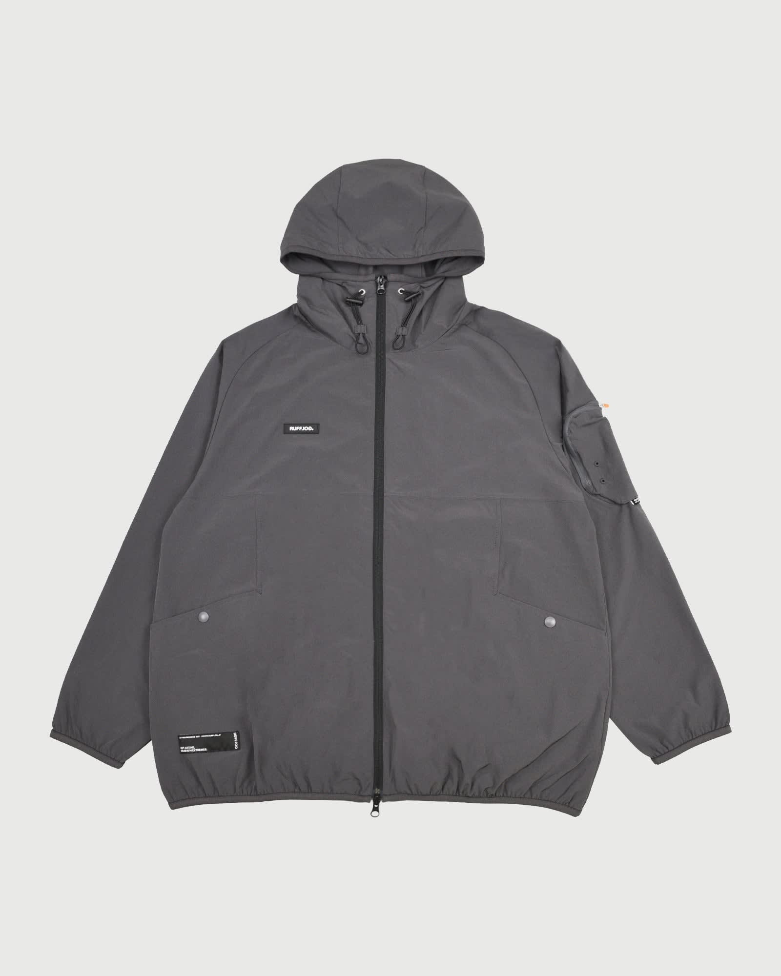 また、フードの調整や、左袖にユーティリティポケット、腰位置にはポケットがあり、デザインと機能を両立しています。